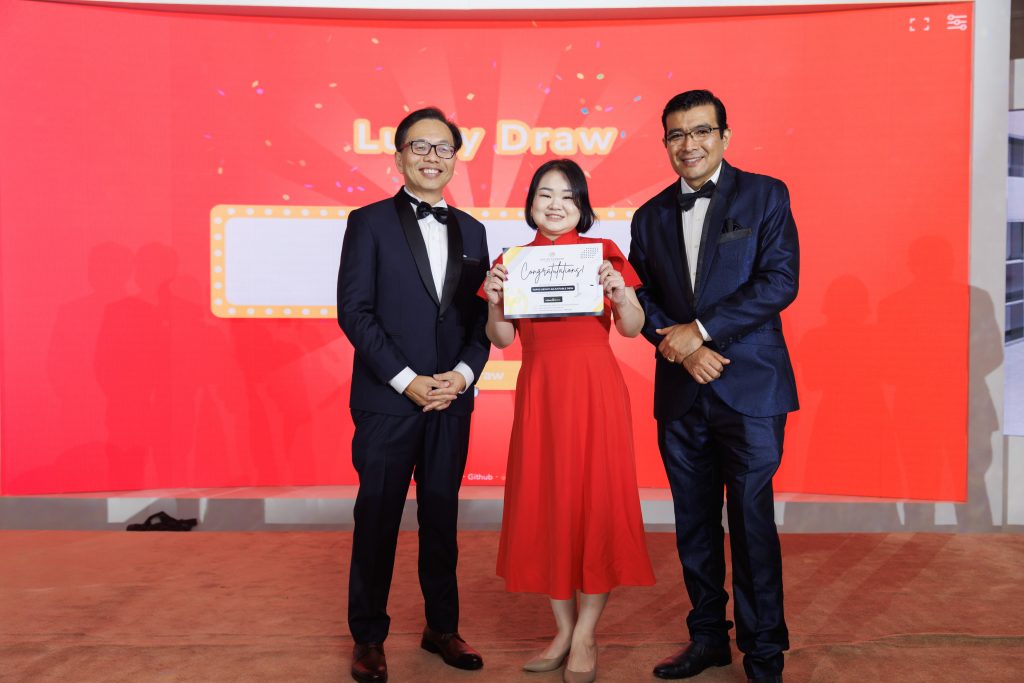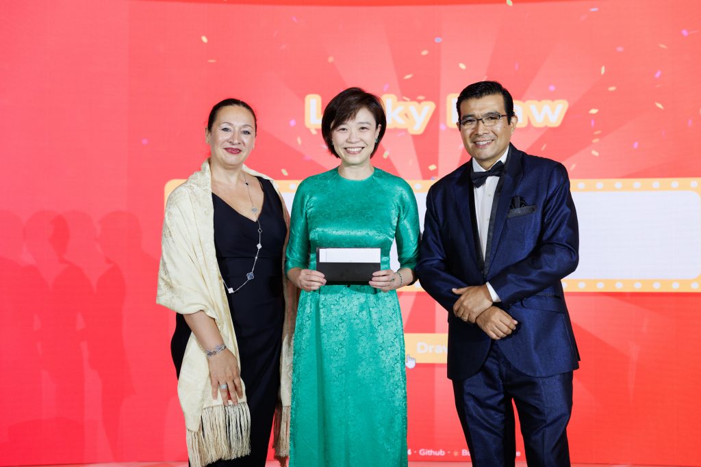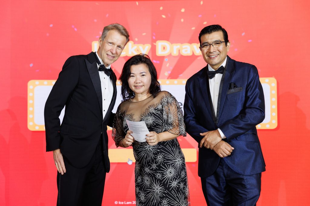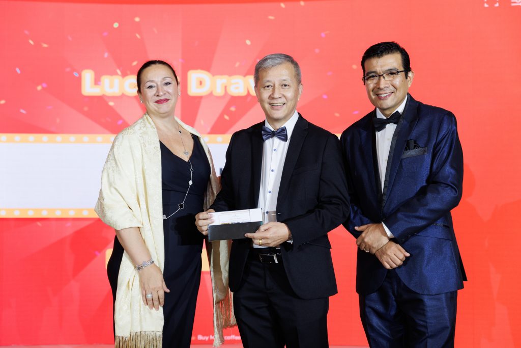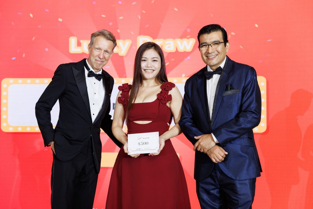 Adding to the excitement of the evening was a special lucky draw that brought cheers and anticipation across the ballroom. The winner, pictured here, walked away with an extraordinary prize that embodied the luxury and prestige of the night. The moment was met with applause, smiles, and a shared sense of joy, reminding everyone that celebrations are best when enjoyed together.